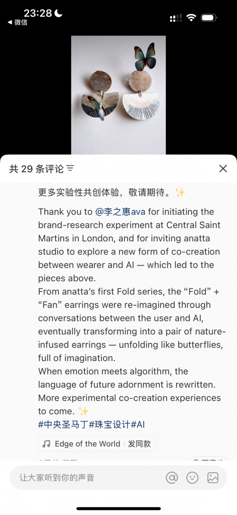 When I posted the outcomes of Intervention 5 on Anatta’s Xiaohongshu platform, the reaction from existing brand users was far more immediate and emotionally expressive than I expected. The post received 32 likes, 29 comments and 3 shares, and many comments went beyond simple appreciation — they reflected emotional resonance and aesthetic recognition: